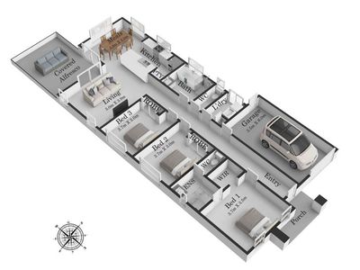 Step outside to enjoy a covered alfresco area with decking, perfect for year-round entertaining, complemented by low-maintenance front and rear gardens.